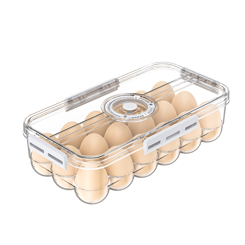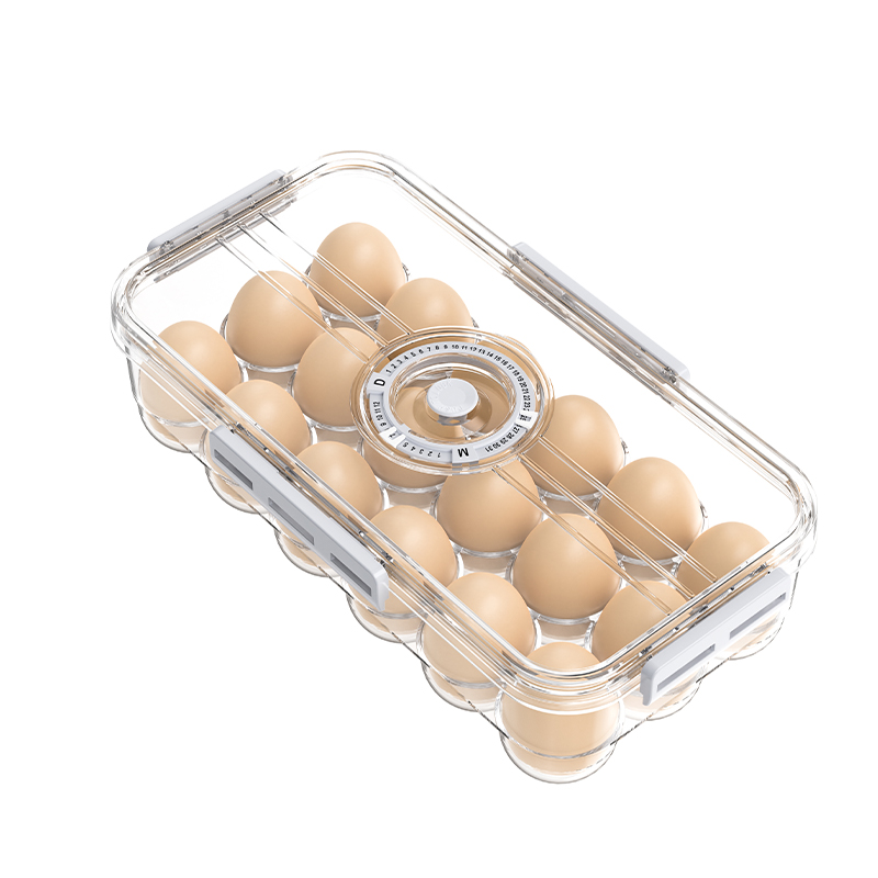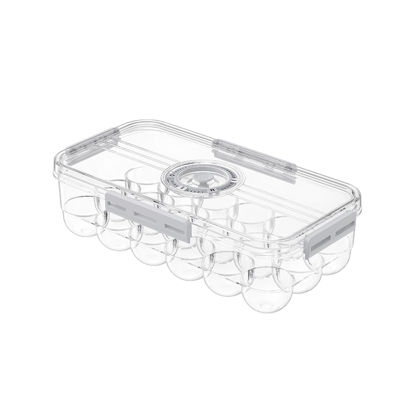 Sigiliul de silicon al Coșul de depozitare a ouălor cu 18 conturi cu capac de tracker de timp face mai mult decât să sigilați pur și simplu recipientul. Se asigură că alimentele menține o calitate optimă și prospețime în timpul depozitării prin etanșitate și proprietăți materiale proiectate cu atenție. Această funcție este obținută prin sigiliul de silicon care formează un spațiu închis strâns între capac și coșul de depozitare. Garnitura de silicon are o elasticitate și durabilitate excelentă și se poate potrivi strâns în jurul marginilor coșului de depozitare pentru a forma un etanșare continuă și stabilă. Acestea nu sunt afectate de schimbările de temperatură și își pot menține performanța inițială de etanșare atât la temperatura scăzută, cât și la temperatura camerei la frigider, asigurându -se că alimentele sunt păstrate în stare bună pentru o lungă perioadă de timp.